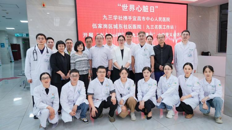 心脏的每一次跳动,都是生命最珍贵的律动,为助力优质医疗资源下沉基层,提升群众对心血管健康的重视,普及心血管疾病防治知识,9月25日,在2025年第26个世界心脏日来临之际,九三学社湖北省名医工作站宜昌站、伍家岗支社携手宜昌市中心人民医院、伍家岗区城东社区医院开展“九久hui福”“九三健康行”“律动不息 世界心脏日”大型义诊活动。九三学社宜昌市委专职副主委刘璇、伍家岗区委统战部常务副部长肖海锋参加活动。