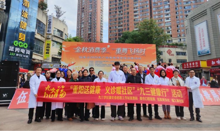 在重阳节来临之际,为传承尊老敬老的传统美德,值伍家乡举办“金秋消费季 重舞飞扬时”嘉年华活动时, 10月26日,九三学社湖北省名医工作站宜昌站、伍家岗支社携手宜昌爱合口腔医院在福久源社区开展“九久hui福”“九三健康行”重阳节大型义诊活动,以专业医疗服务为老年朋友送上节日关怀,让这个深秋暖意融融。