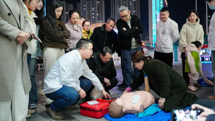 活动现场宜昌市中心人民医院心血管内科、神经内科等多学科专家团队及伍家岗区城东社区医院医疗力量,为市民提供“一站式”健康服务。专家们现场开展心血管病咨询、风险筛查与评估,心梗早期识别科普,重点讲解胸痛、胸闷、呼吸困难等心梗“预警信号”,针对慢病患者开展合理用药与安全用药指导;普及健康饮食、适量运动、戒烟限酒等健康生活方式知识,降低心血管病风险;现场示范培训基本心肺复苏(CPR)及自动体外除颤器(AED)使用方法,提升居民应对突发心脏事件的自救互救能力;并向居民发放心脏健康知识、心梗识别要点等健康科普资料。“有胸痛,我要拨打120;心梗救治,争取黄金120分钟”,活动将重点普及这一核心救治理念。让“防筛管治康”理念深入人心。