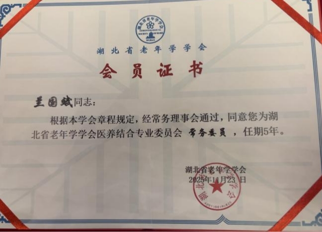 近日,由湖北省老年学学会牵头主办、武汉市东湖医院承办的湖北省老年学学会医养结合专业委员会成立大会暨医养结合高质量发展学术会议在武汉举行。全省医疗机构、养老机构、高等院校等领域的140余名专家学者与行业代表参会,共商医养结合高质量发展大计,共同见证专委会成立。九三学社西陵支社社员、宜昌市第二人民医院老年病科主任兰国斌当选湖北省老年学学会医养结合专业委员会第一届常务委员。
