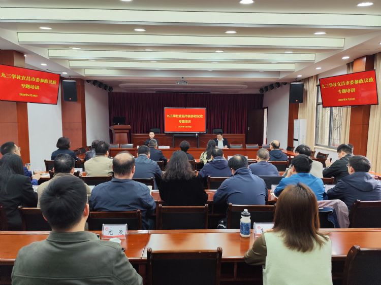 4月10日,九三学社宜昌市委2026年参政议政培训在宜昌市民主党派机关二楼大会议室举办,社宜昌市委参政议政“智囊团”全体成员及各基层组织分管参政议政的委员共40余人参加培训。
